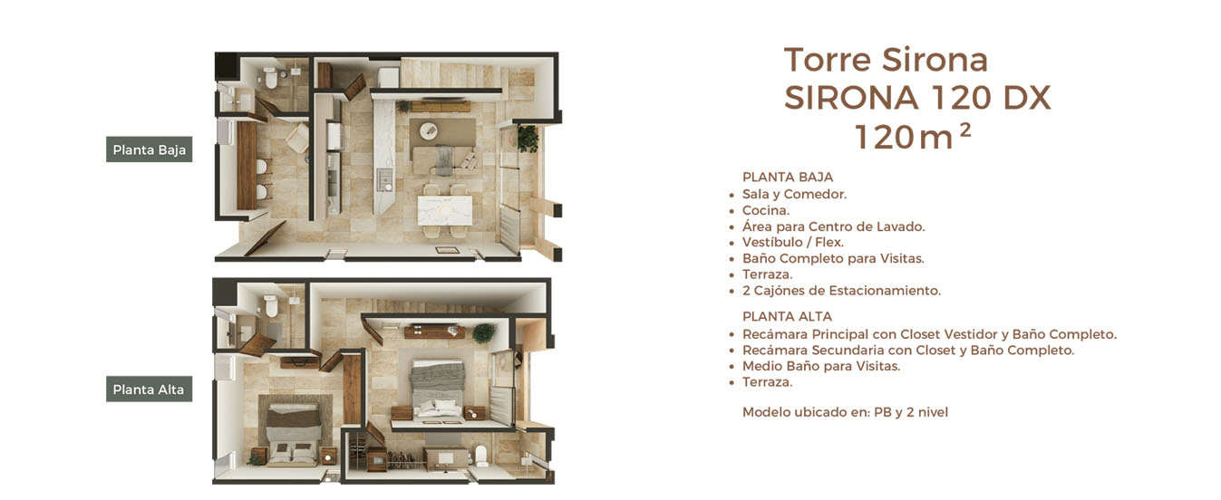 - Estacionamiento: 2 Espacios.